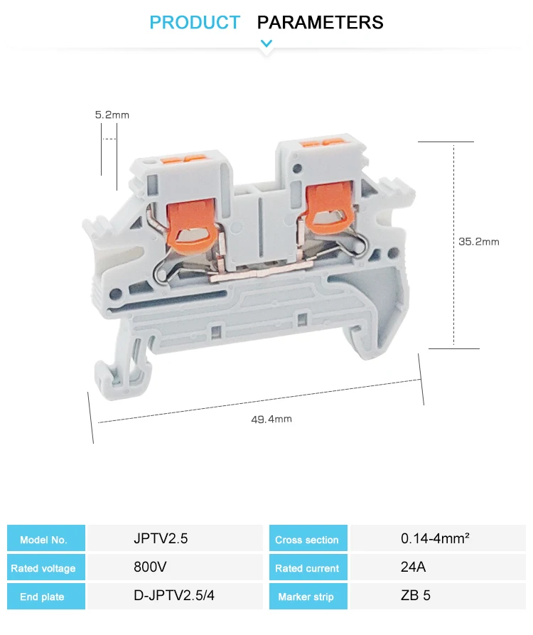 10Pcs PTV 2.5 DIN Rail Terminal Block Side-Entry Push-in Connection 2.5mm² 12 AWG Cable Wiring Electrical Wire Connector PTV2.5