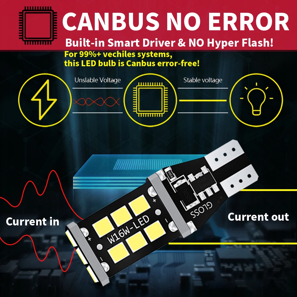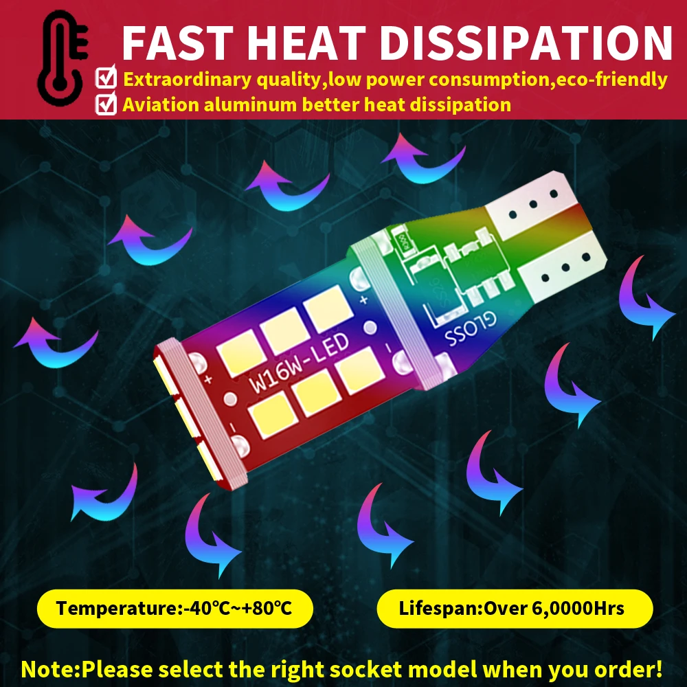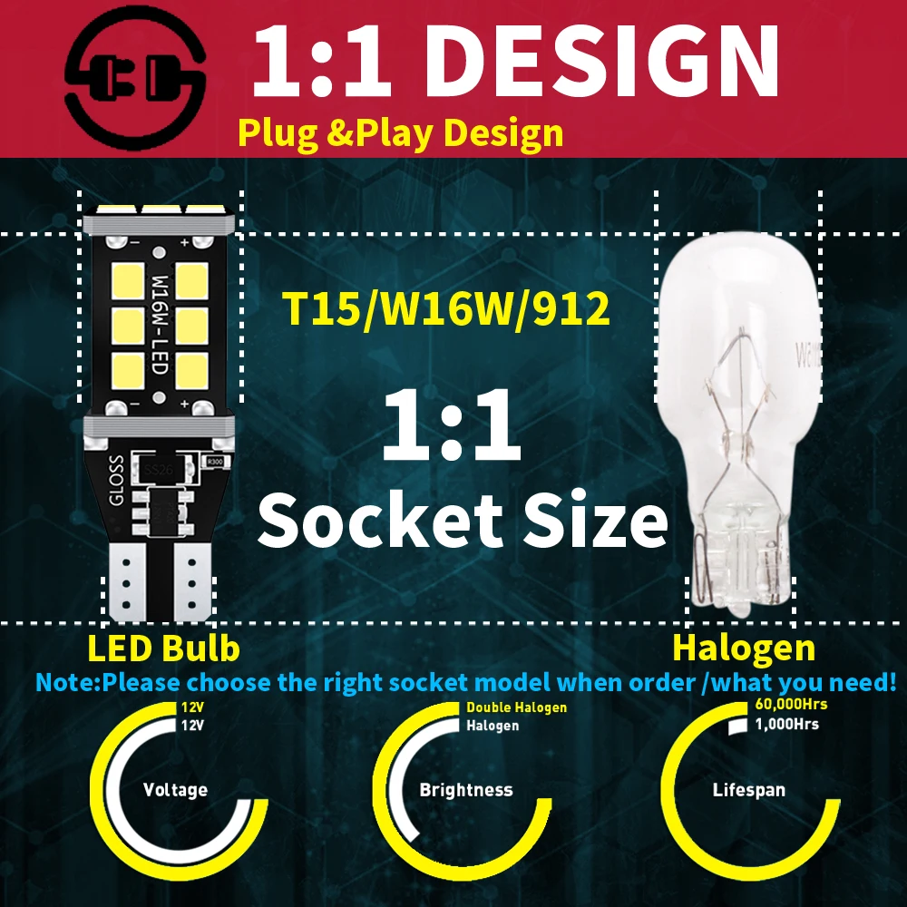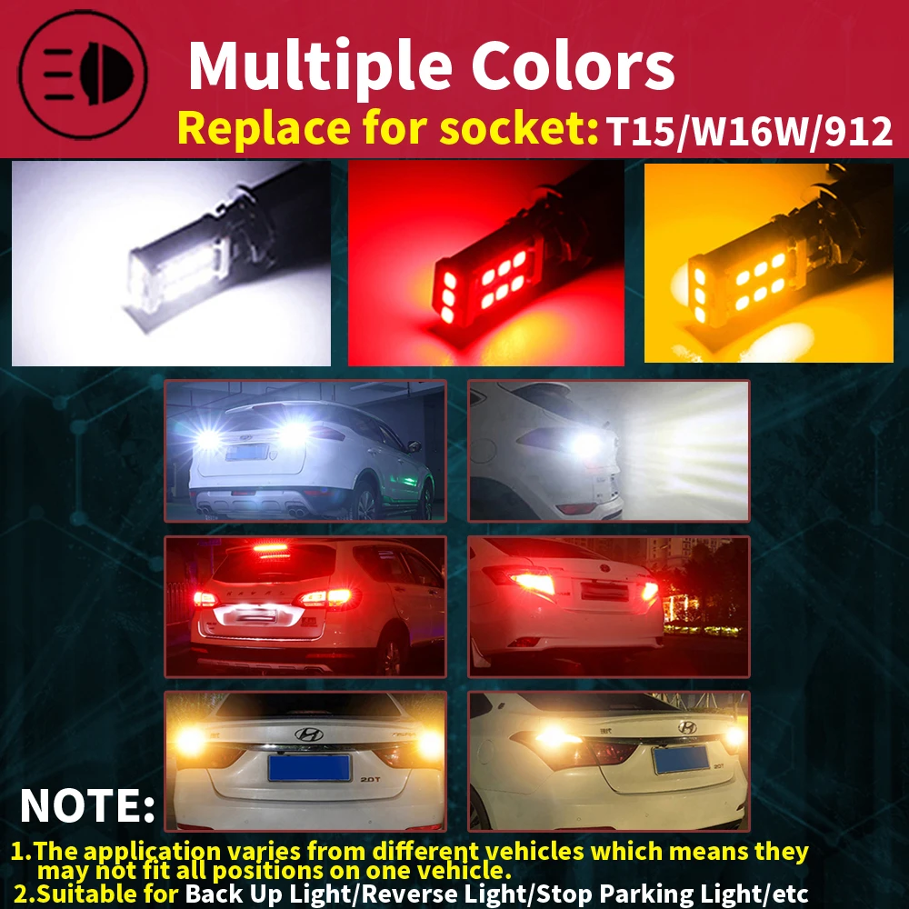 2x T15 W16W LED Super Bright 15SMD 2835 921 912 LED Canbus No ERROR Car Backup Stop Reserve Lights Bulb Brake Lamp red White