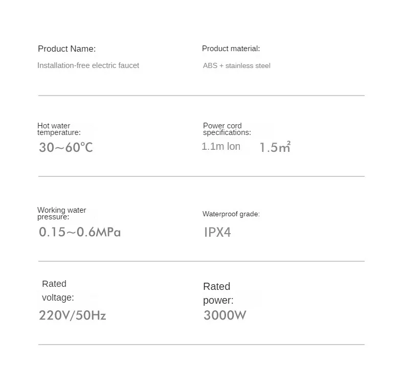 3000W Electric Tankless Instant Hot Water Heater Faucet for Kitchen with Temperature Display Hot Cold Tap