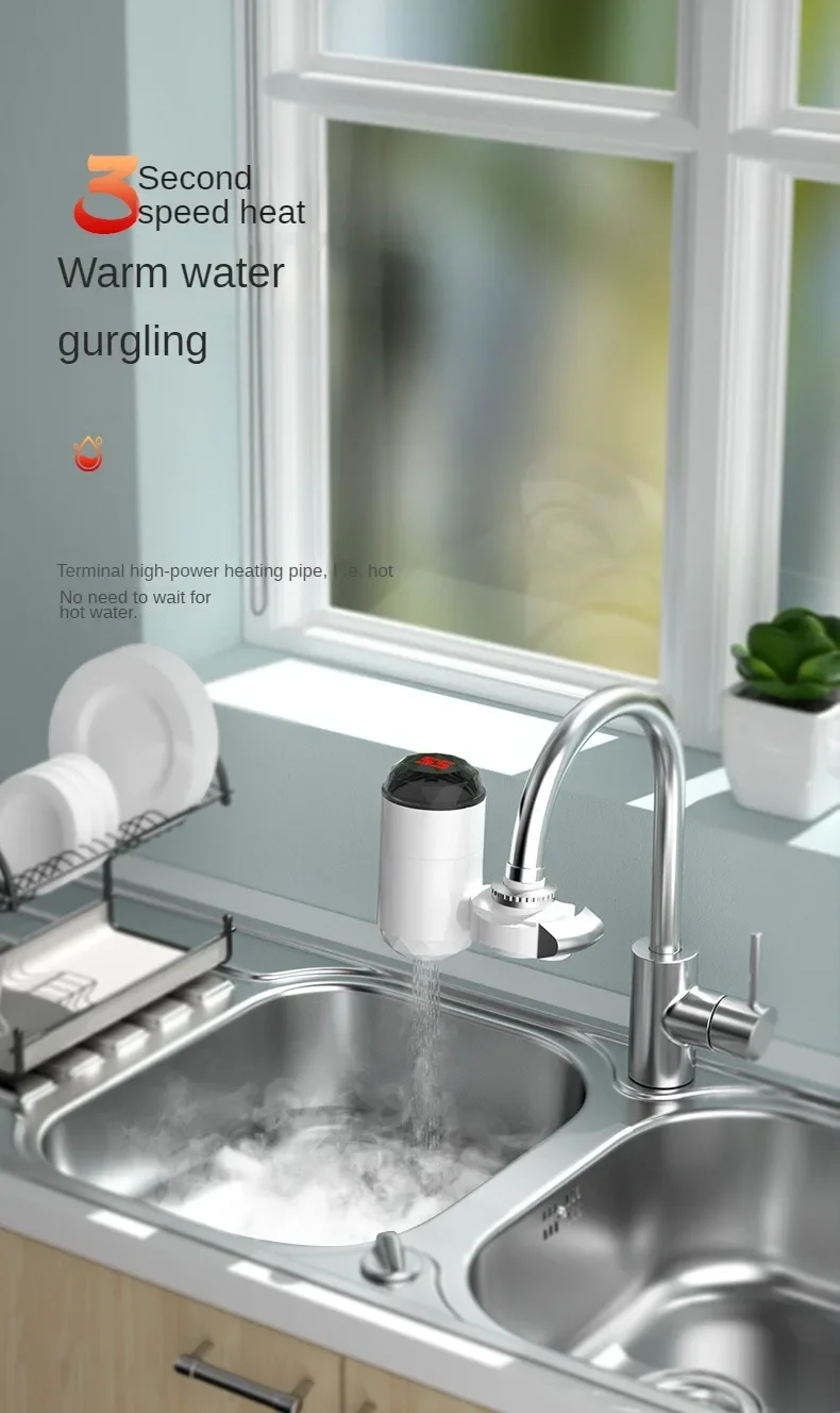 3000W Electric Tankless Instant Hot Water Heater Faucet for Kitchen with Temperature Display Hot Cold Tap by MVEnergo
