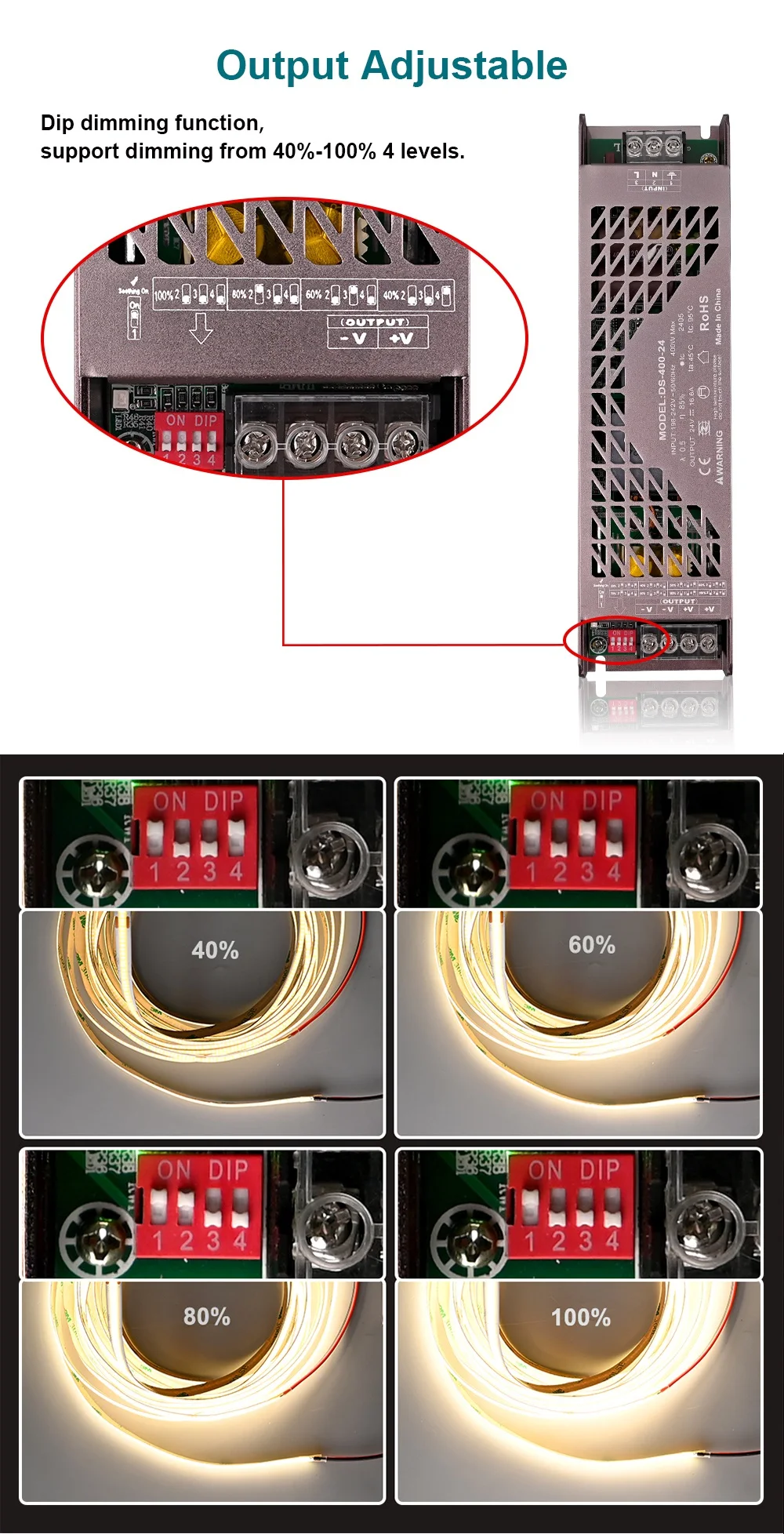 ✨Dip dimming function,support dimming from 40%——100%  4 levels