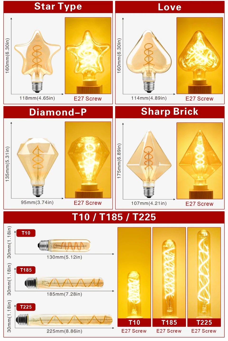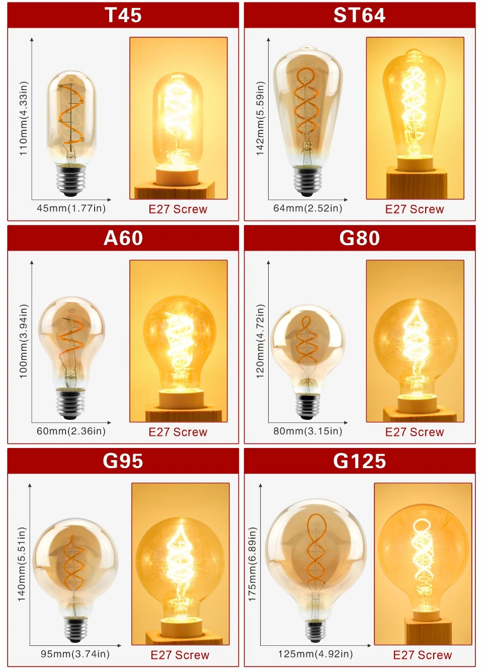 E14 E27 Retro LED Spiral Filament Light Bulb 4W Warm Yellow 220V C35 A60 T45 ST64 T185 T225 G80 G95 G125 Vintage Edison Lamp by MVEnergo