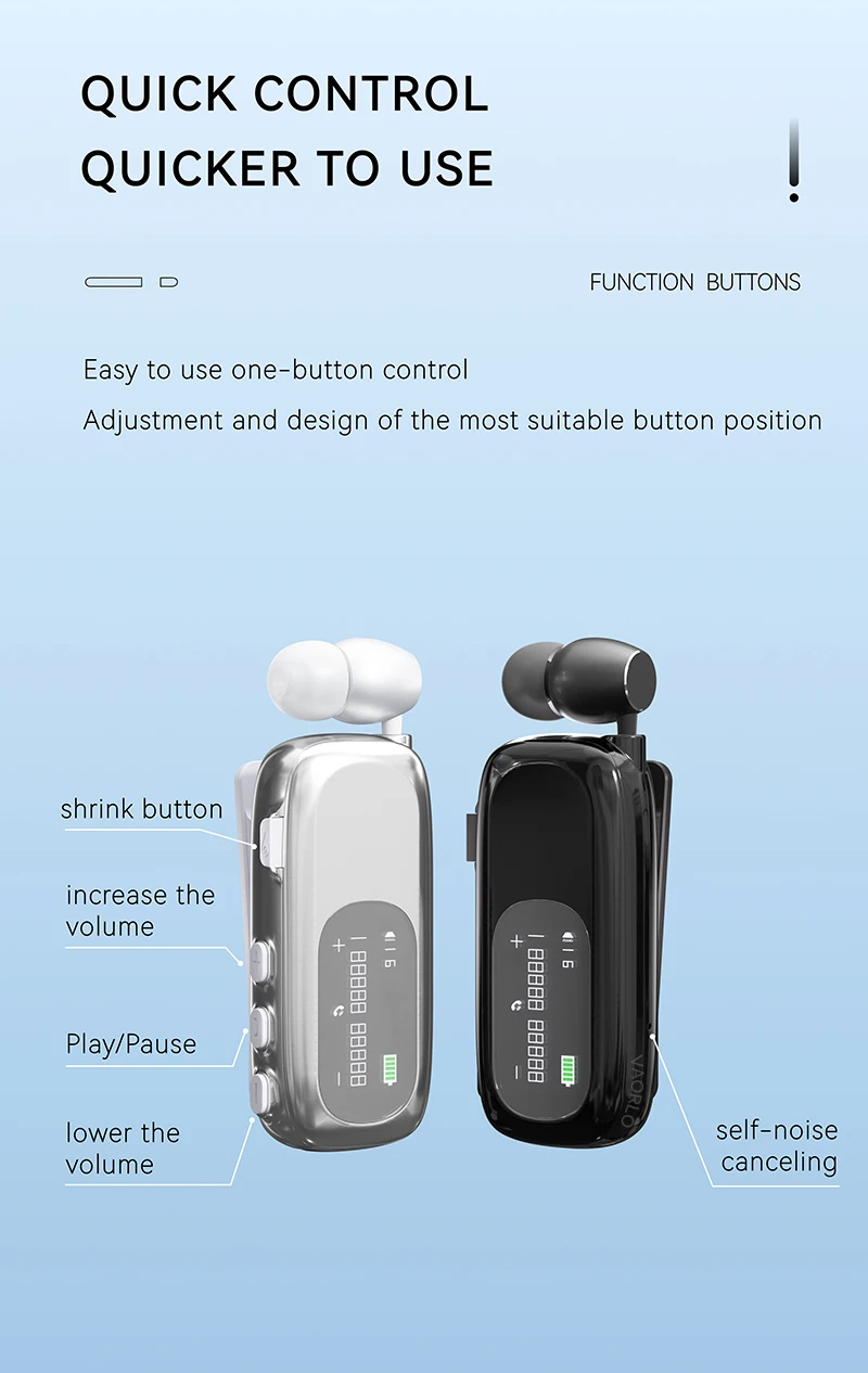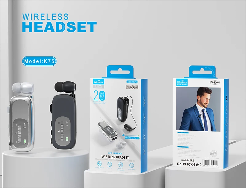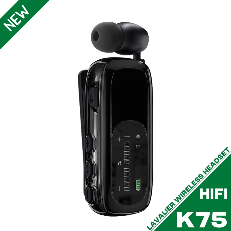 K75 Lavalier Business Bluetooth 5.4 Earphone Talk/Music 20H With Mic Noice Cancelling One-Click Photo LCD HIFI Wireless Headset