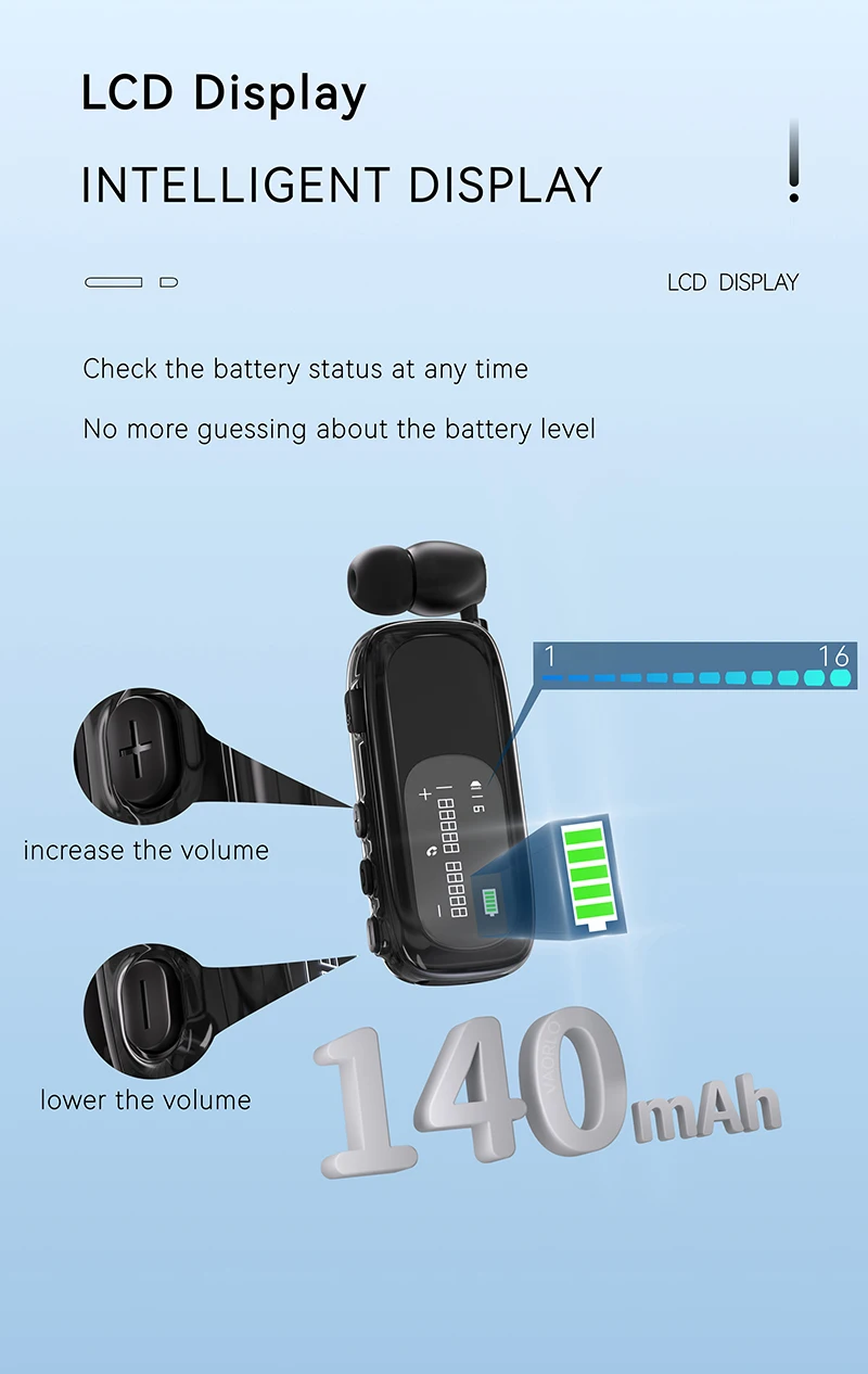 Features18: K65 K55 Lavalier Business Bluetooth 5.2 Headphone Talk/Music Time 20 Hours,LED Digital Display,Noice Cancelling Wireless Headset