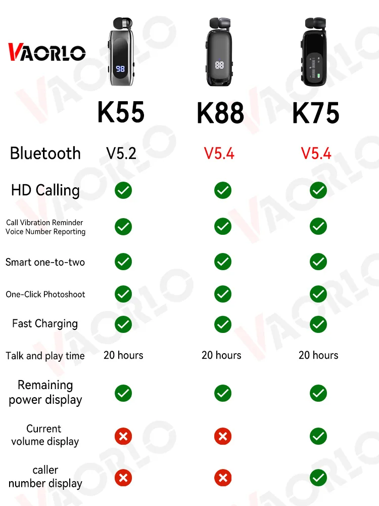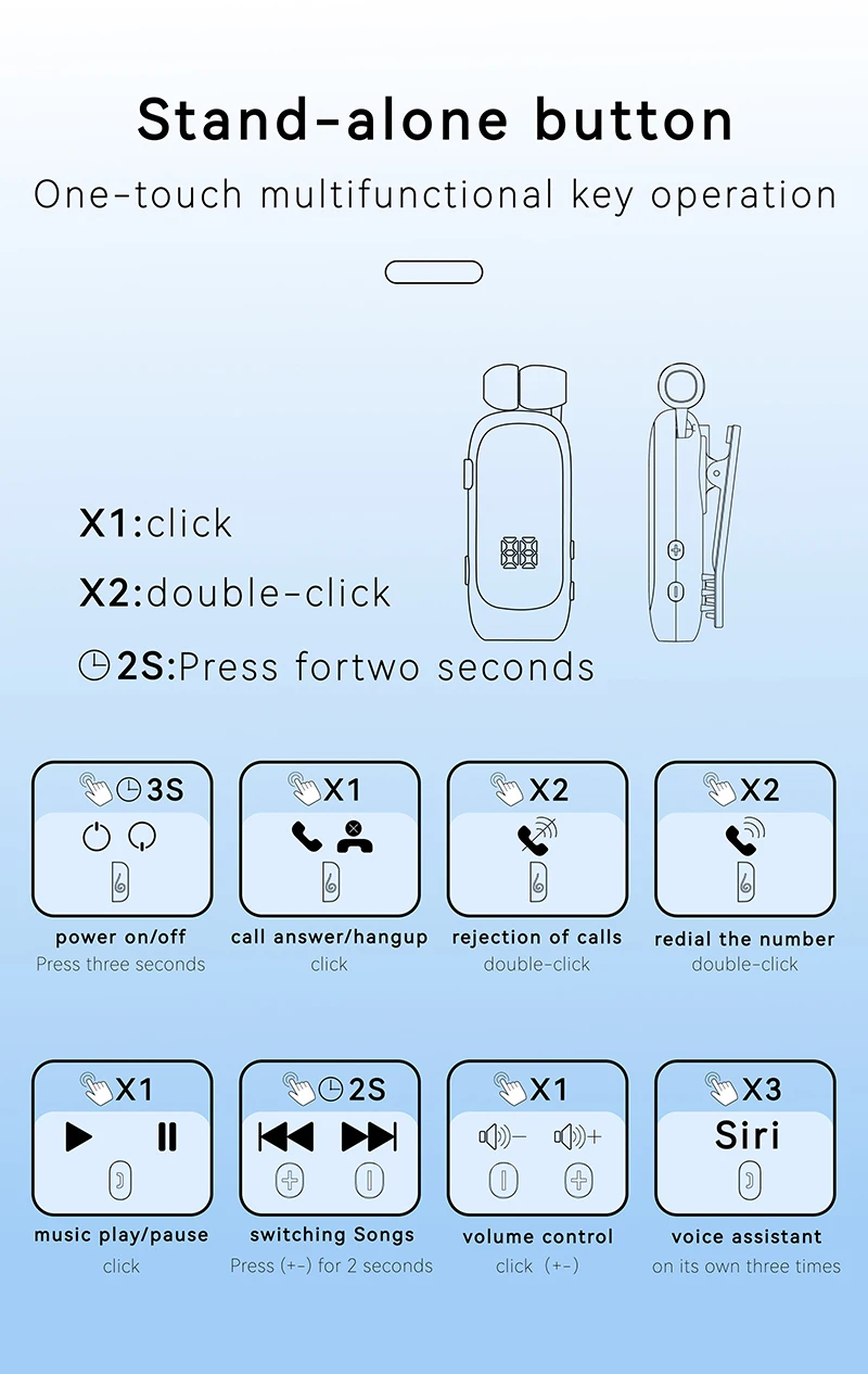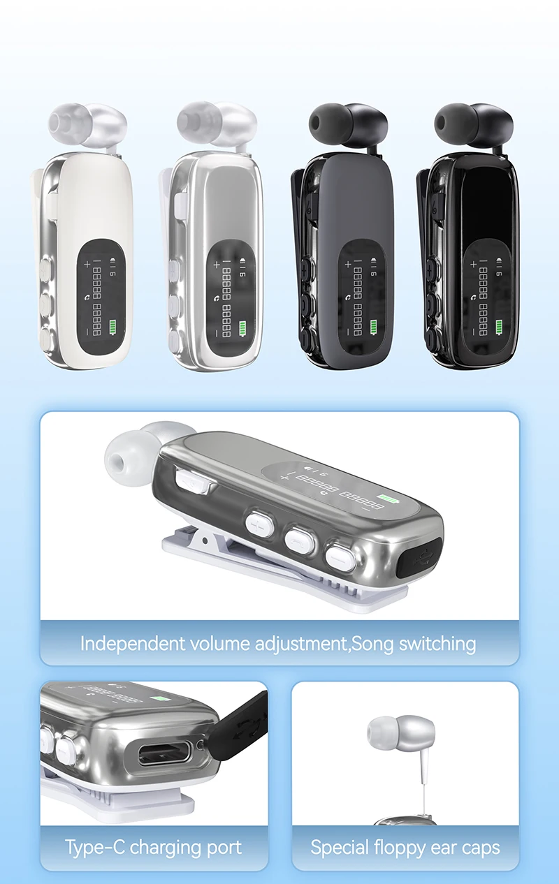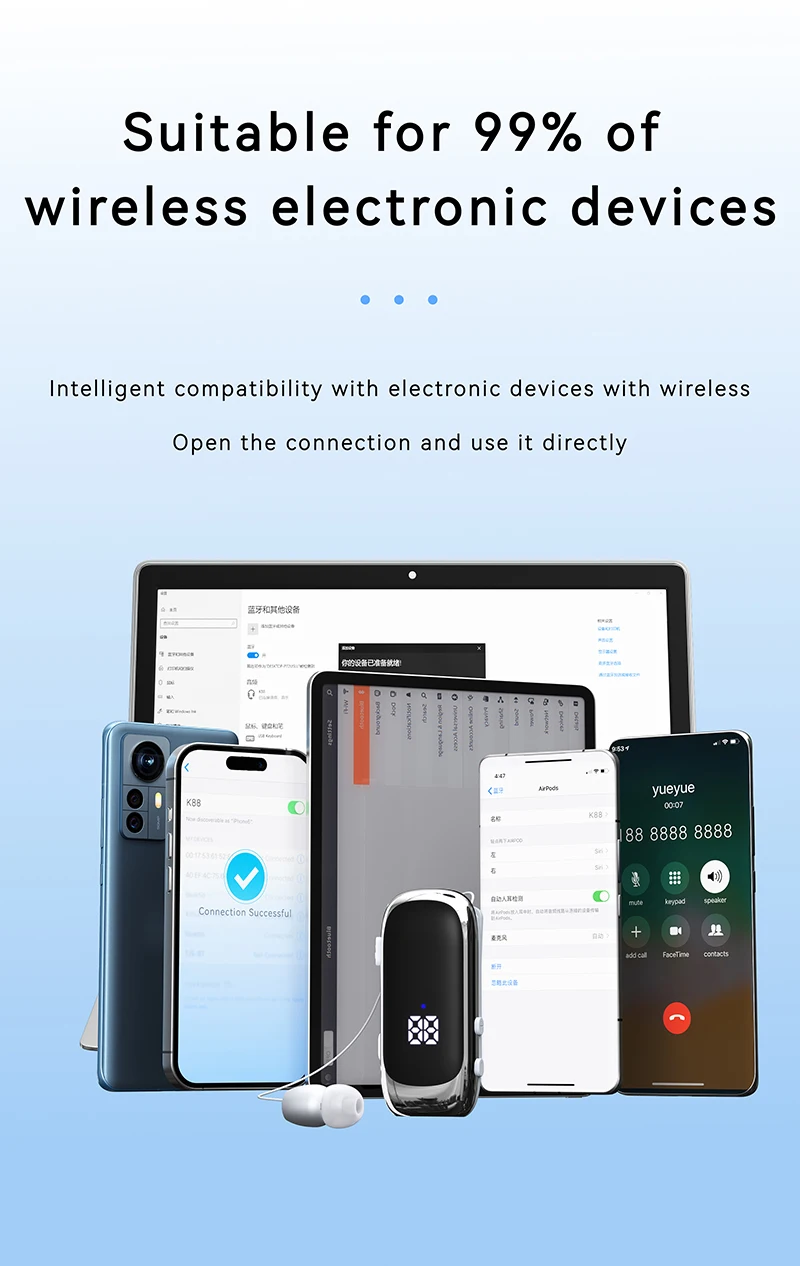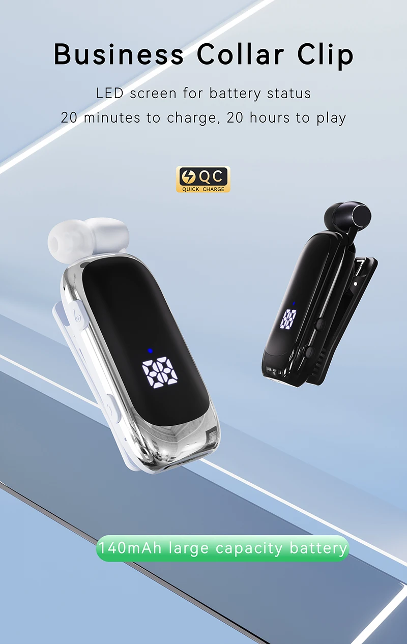 K75 Lavalier Business Headset Bluetooth 5.4 Bass Earphone HD Call Vibration Reminder+Voice Number Reporting Wireless Headphone