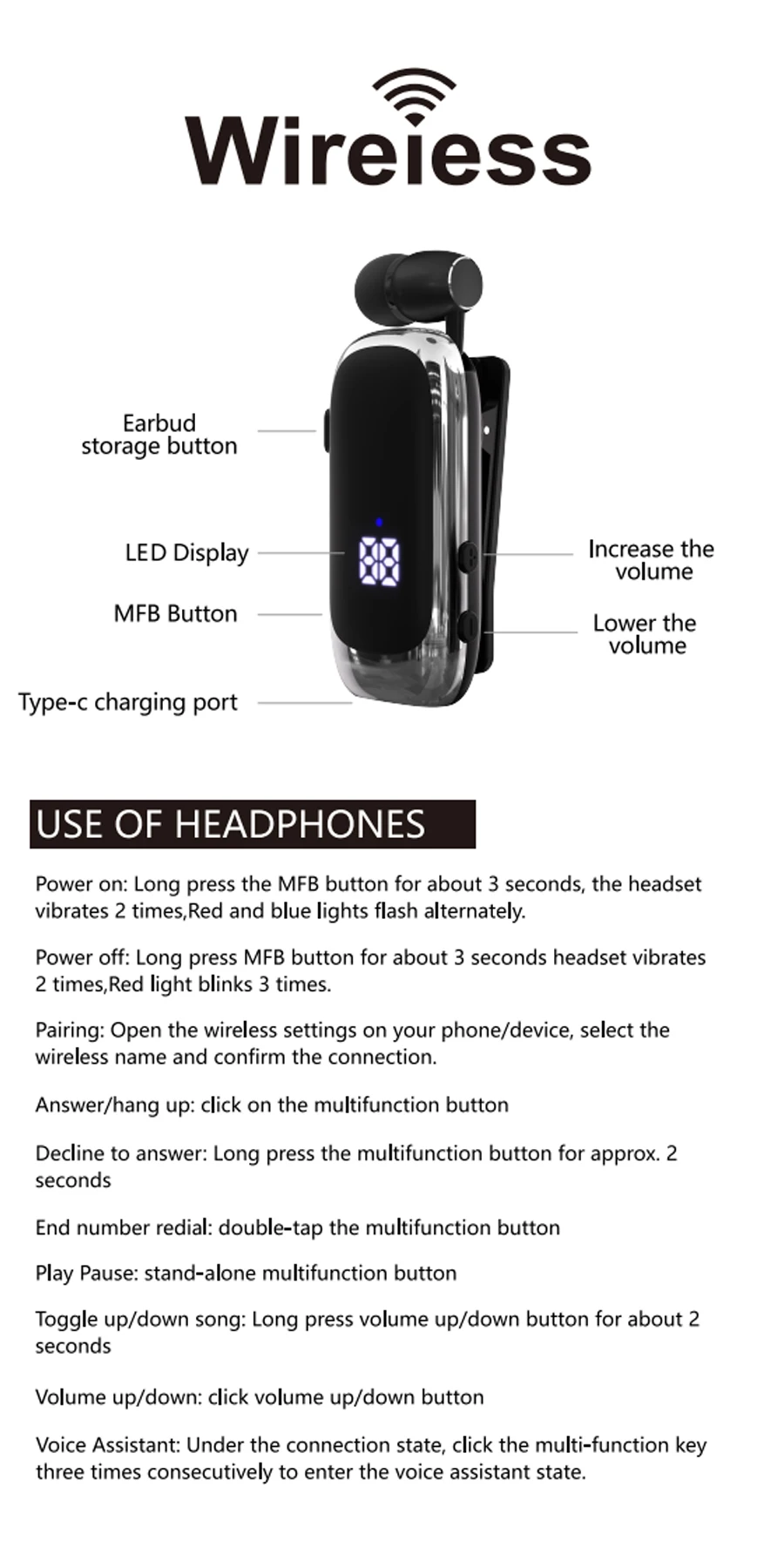 【LED HD Digital Display】Equipped With a High-Definition White Light Cool-Color Led Digital Display, The remaining power of the headset is clear at a glance;