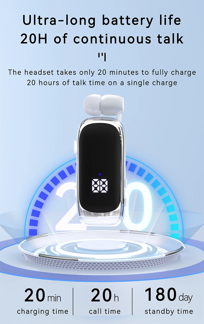 【Ultra-Long Battery Life】Built-In 140mAh Rechargeable Lithium Polymer Battery, Full Of About 20 Mins, About 20 Hours Of Continuous Listening and Calling, Standby For About 180 Days;