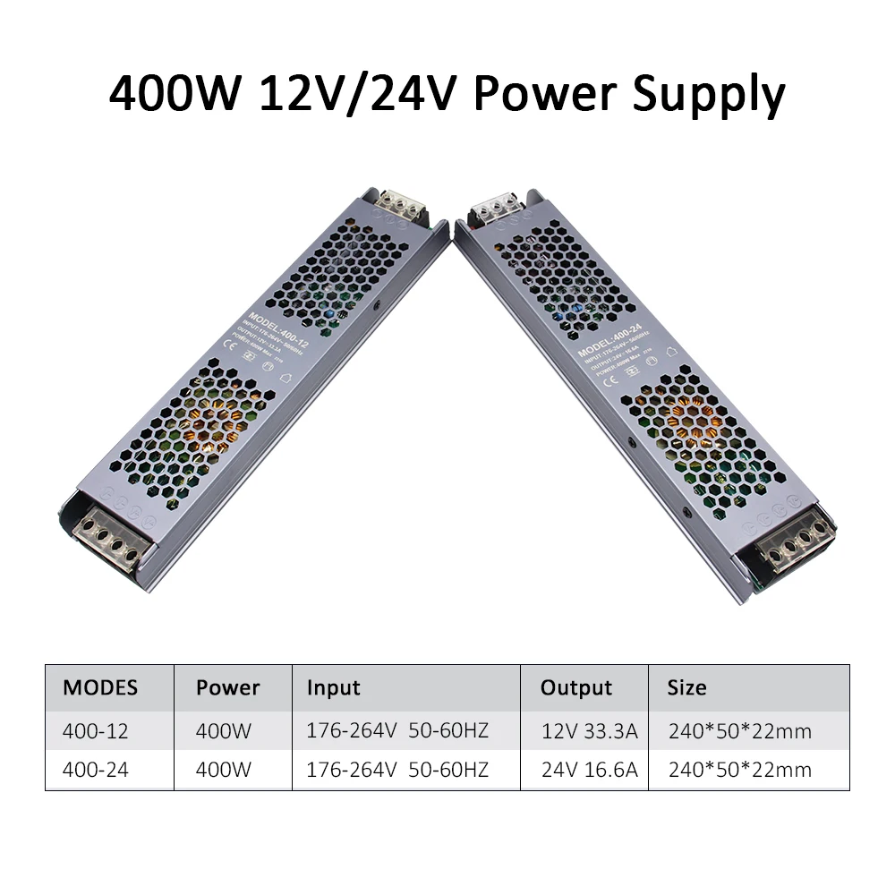 MJJC Power Supply Unit 12V 24V 60W 100W 200W 300W 400W 110V 220V 230V AC to 12 24 Volt DC LED Strip Driver Lighting Transformer