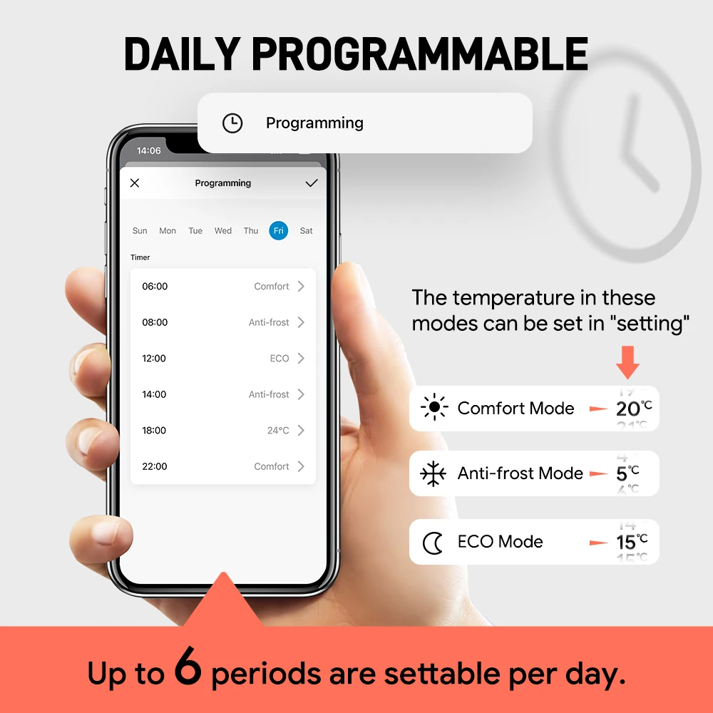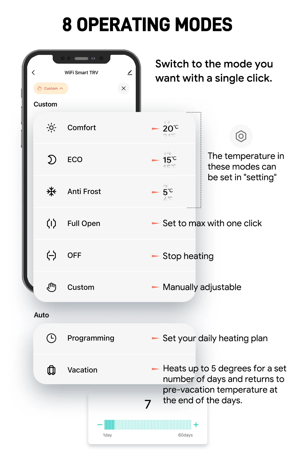 Holiday mode, manual mode, energy-saving mode, comfort mode, etc., you can set the temperature you want with just one click.