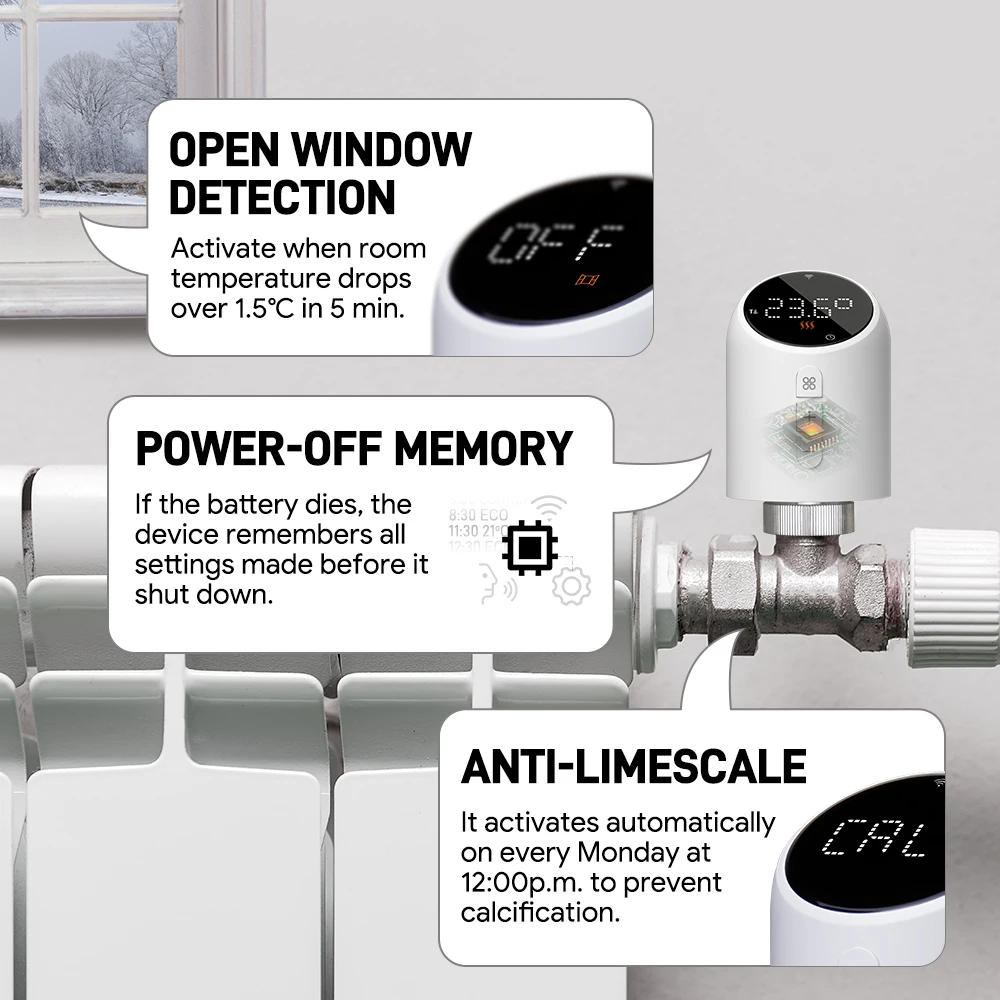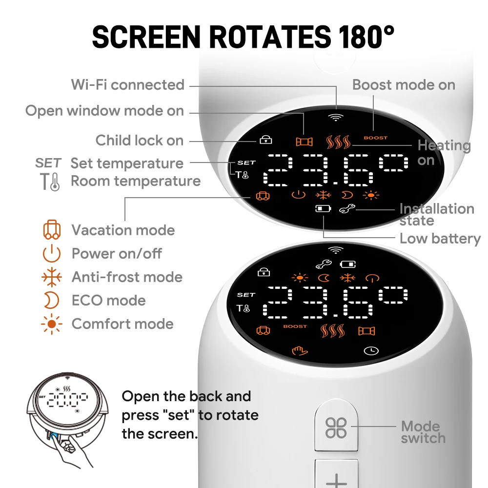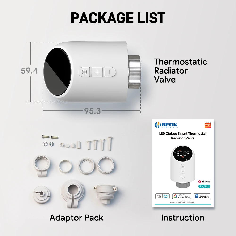 Smart Tuya ZigBee Radiator Actuator Thermostat New mini design with simple and clear LCD display screen on the head,the radiator thermostat is with LCD digital display screen and 3* AA batteries powered, which is a special valve using cooperatively with heating radiator. Artificially set indoor temperature, mainly used in the floor heating system to control the closing and opening of the pipe Available.