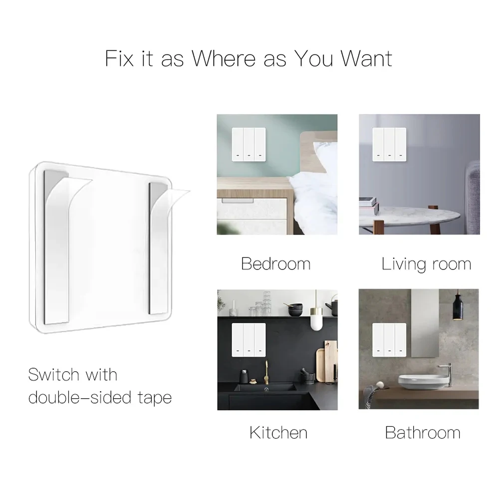 3. This scene switch does not require connecting wires and is powered by a CR2032 battery, which you can purchase at a supermarket. It is very convenient to use. You can stick it on the wall as a switch, or hold it in your hand or use it as a remote control in any room