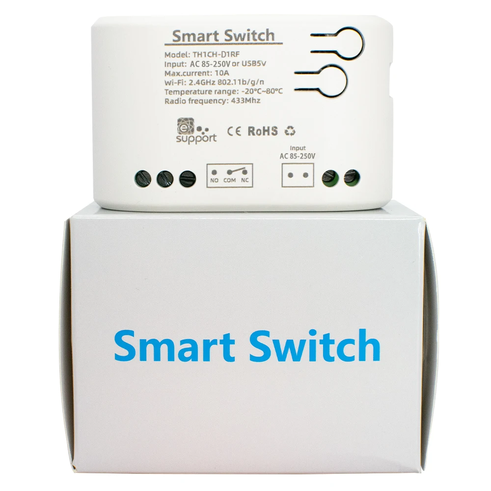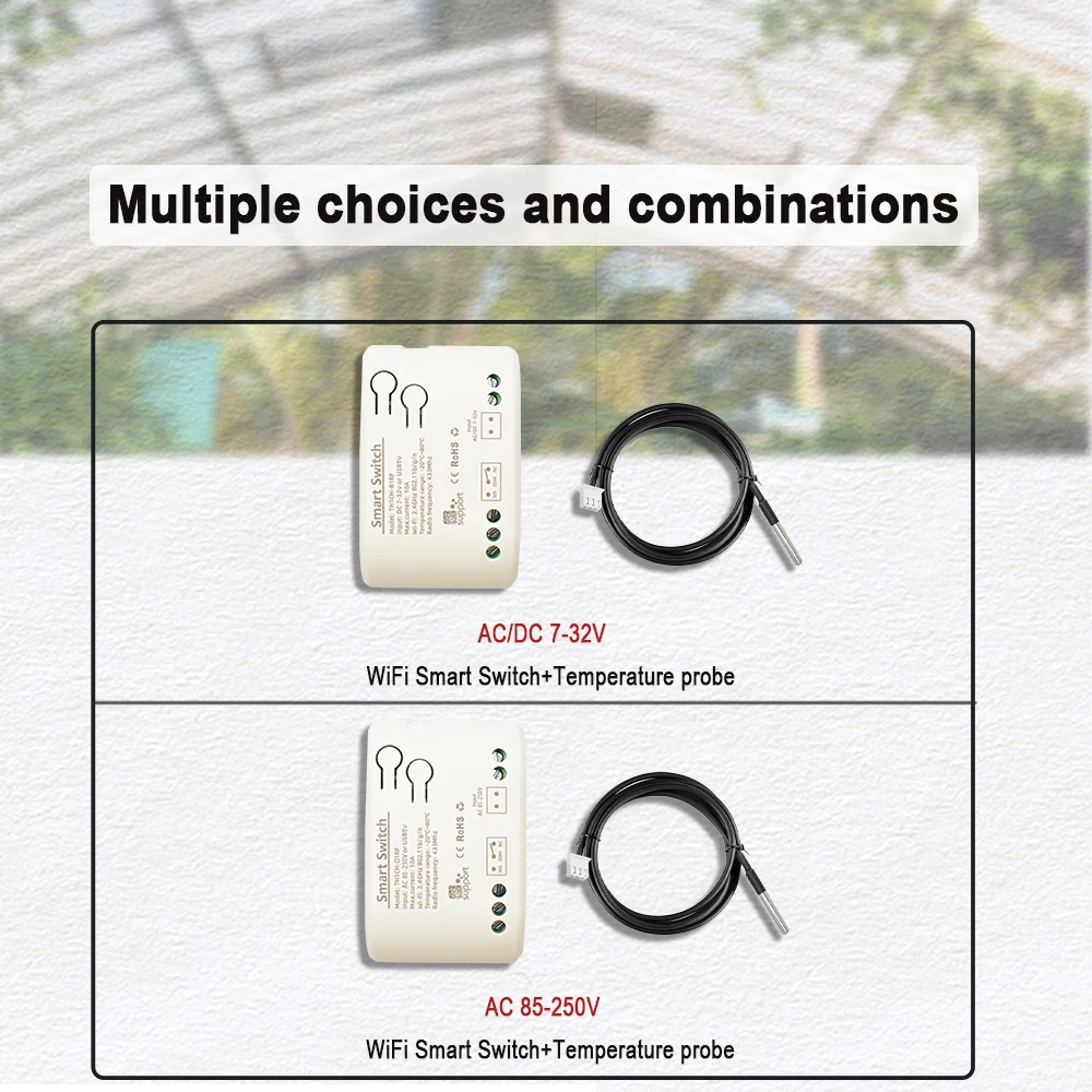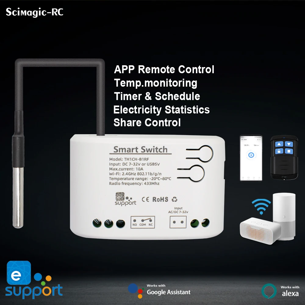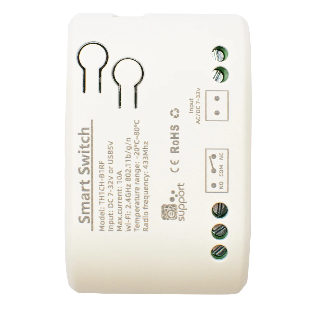 This item is a universal switch for your smart home system to remotely and automatically turn on/off any appliances by phone eWelink APP. When the temperature of the environment falls within the range, it will automatically turn on or off the connected devices. It also supports timing turning on/off the appliances and supports presetting the range for temperature.